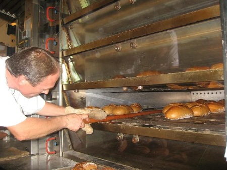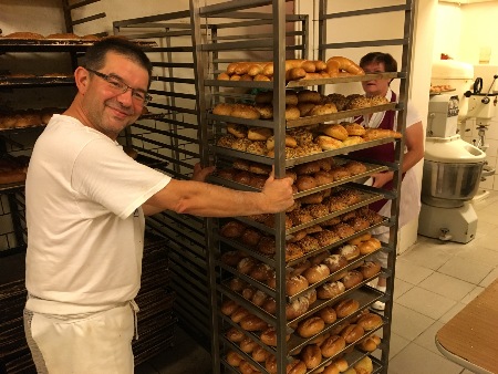 Die Bäcker sind schon früh am Morgen mit dem Teig beschätigt, um 6°° Uhr muss ja alles schön im Laden sein.